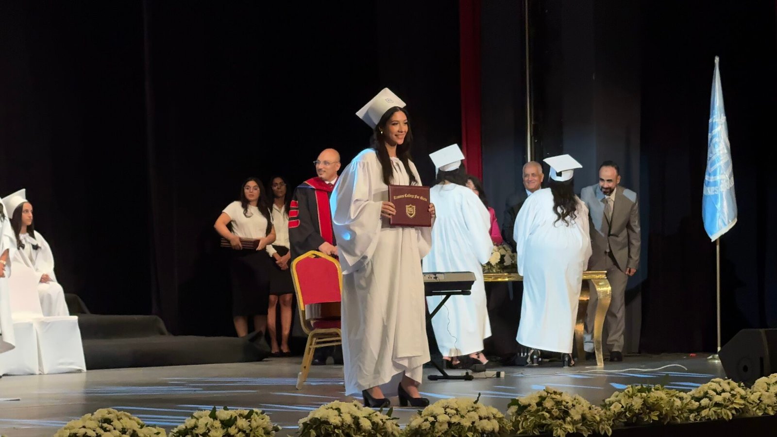 The graduation ceremony of Ramses College for Girls was marked by the presence of several distinguished public, religious, and educational figures, among them Engineer Margaret Sarofim, Deputy Minister of Social Solidarity; Dr. Rev. Estefanos Zaki, President of the Council of Educational Institutions and Secretary-General of the Evangelical Community; Dr. Rev. Magid Karam, Secretary-General and Legal Representative of the Council; and Dr. Mona Makram Allah, Principal of Ramses College for Girls.