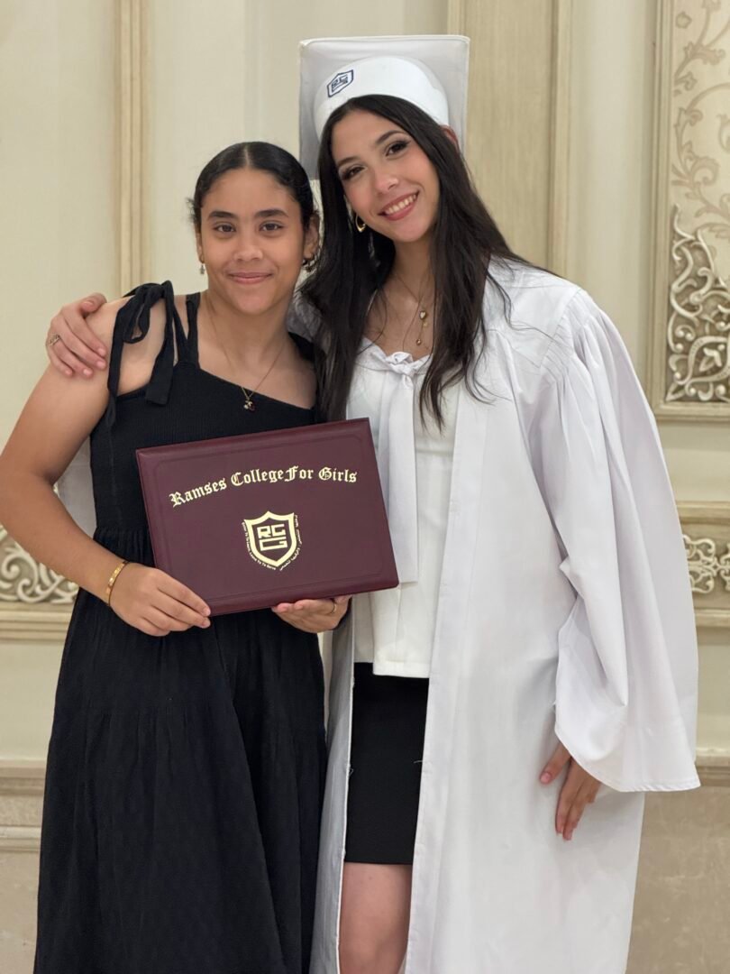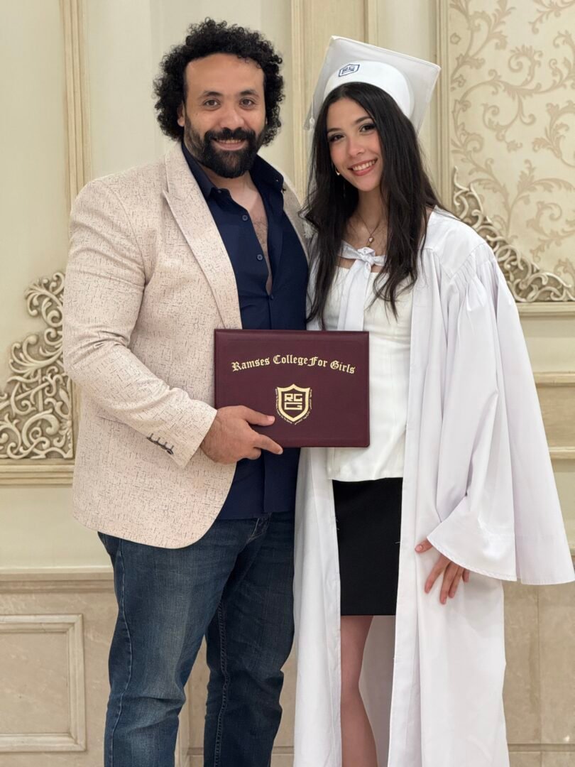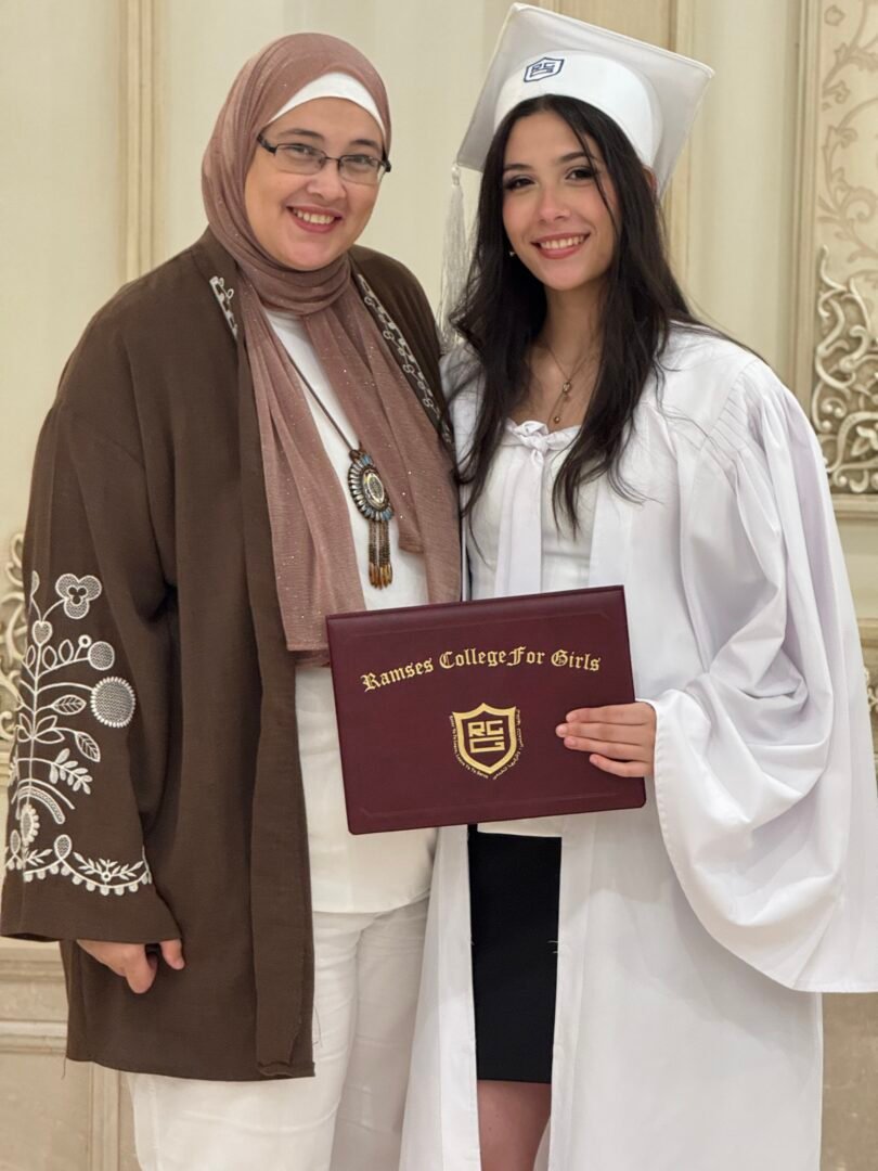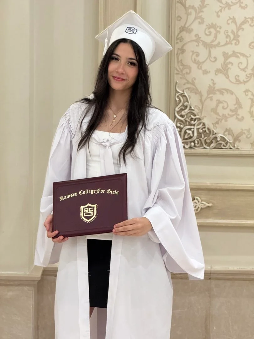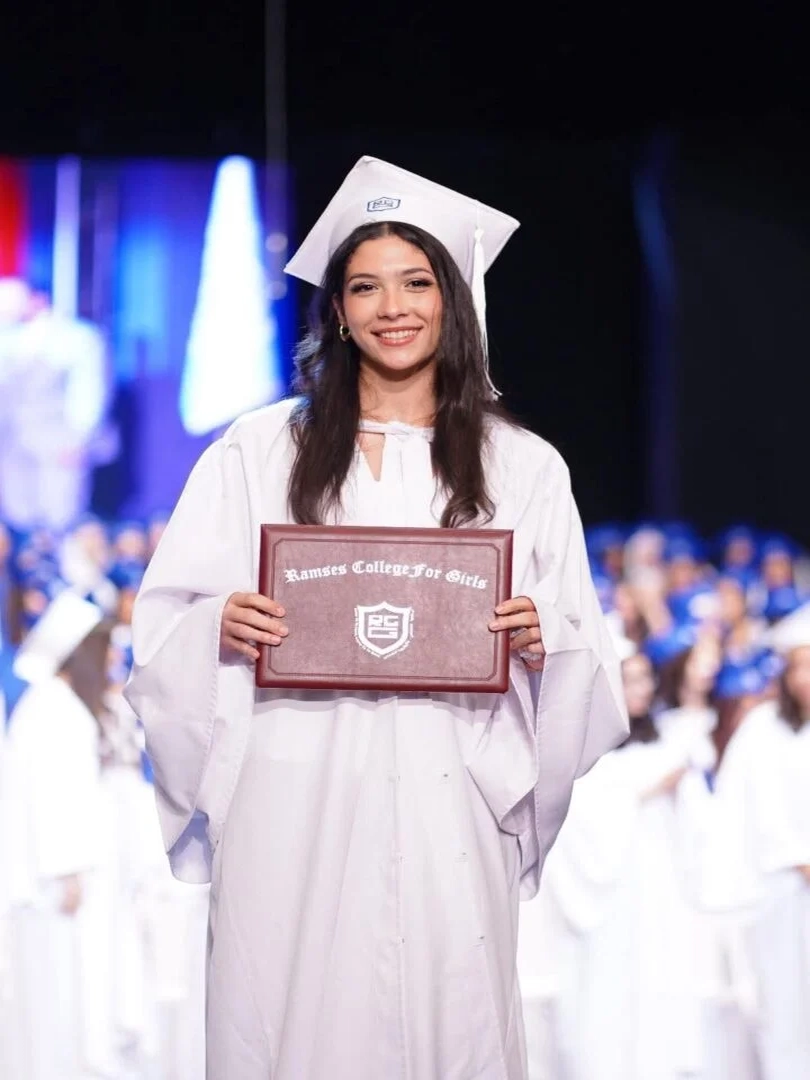Student Yasmine received a special recognition during the graduation ceremony of Ramses College for Girls, after achieving third place at the school in the General Secondary Certificate. The school administration praised her perseverance and dedication, making her an inspiring role model among the class of 2025.